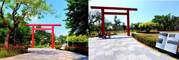 岡山公園與壽天宮毗鄰而居,縣市合併後重新整建,現今鳥居以原址整修回復原貌,完整保留公園前身人文歷史的原味,接續強化綠地與周遭環境的連結進行空間改造利用,每到假日人潮聚集,成為最負盛名的休閒活動場所。中國式特色建築的市立圖書館岡山分館及老人活動中心也在園區內,加上國立岡山高中的寧靜校舍,整個岡山公園除了兼具生態、環保與滯洪功能外,更瀰漫著濃厚的人文氣質。